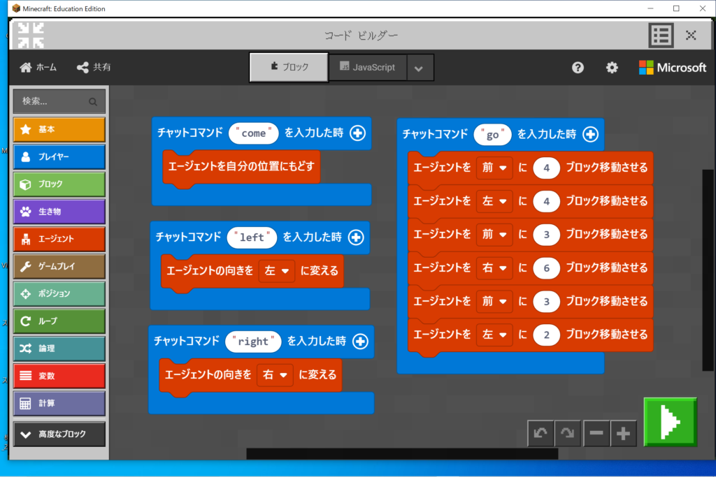 - comeで呼び出すごとにエージェントの向きを確認できていない
