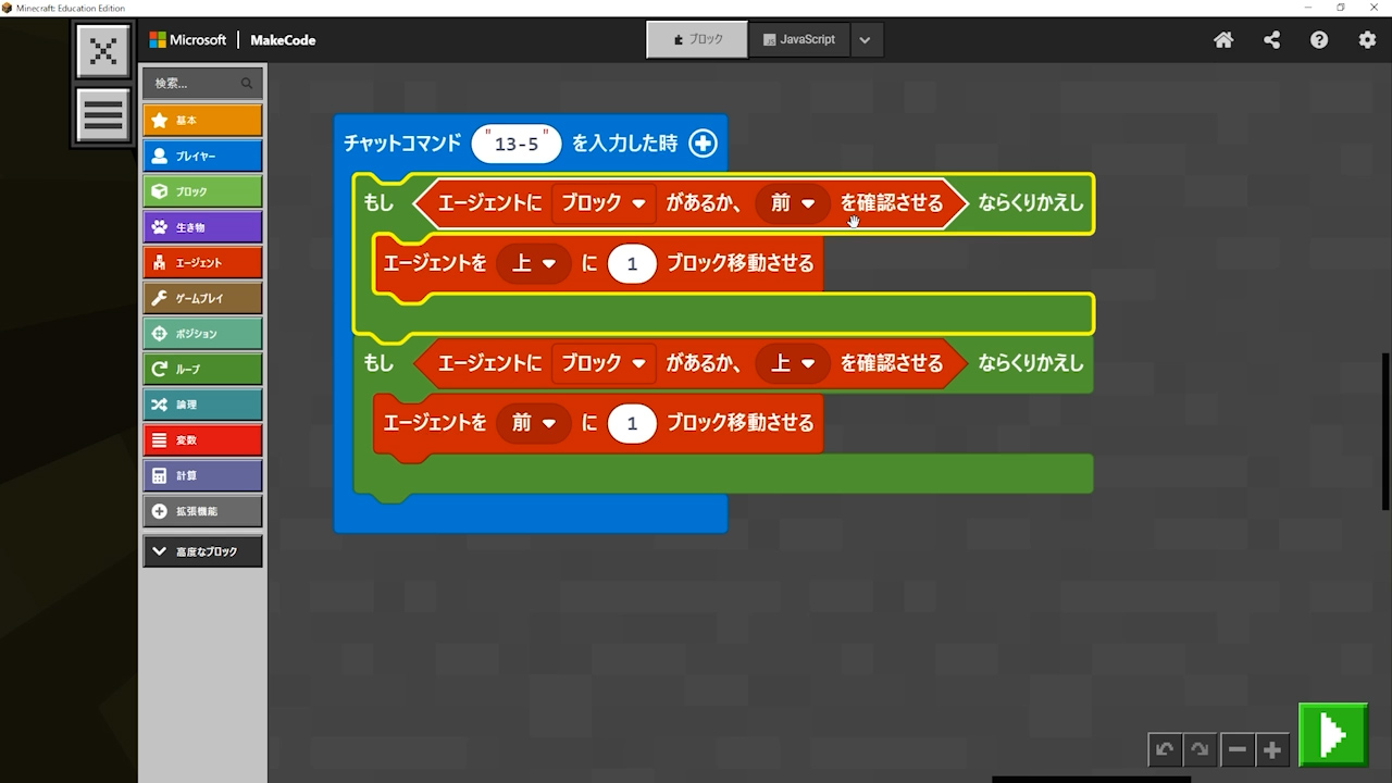 while (agent.detect(AgentDetection.Block, UP)) {