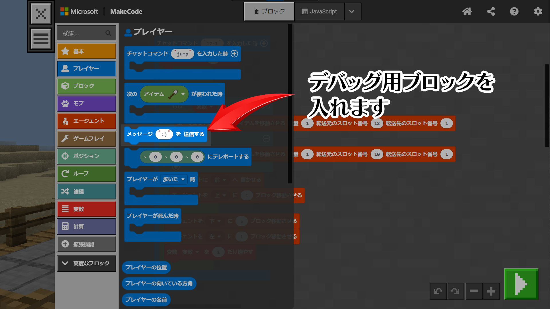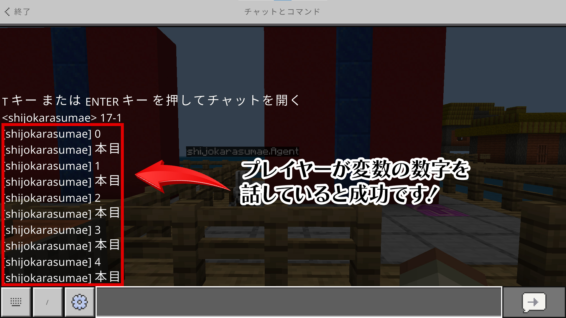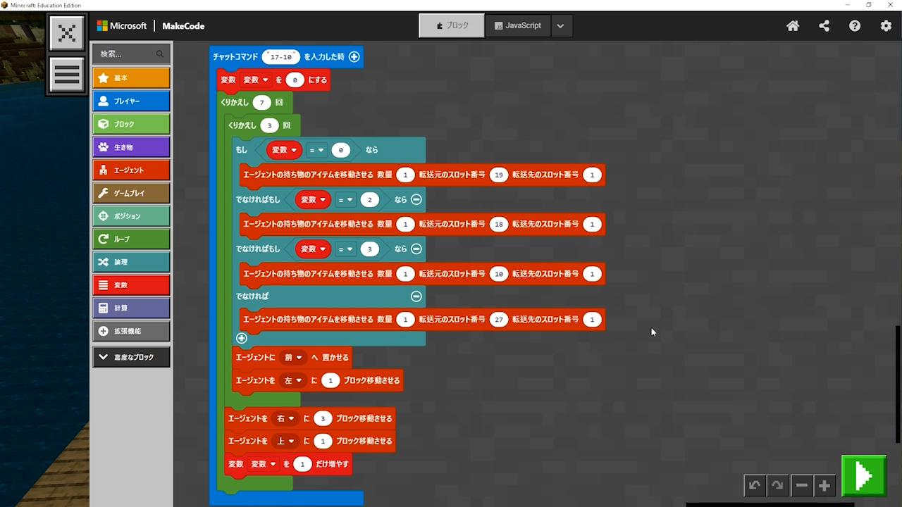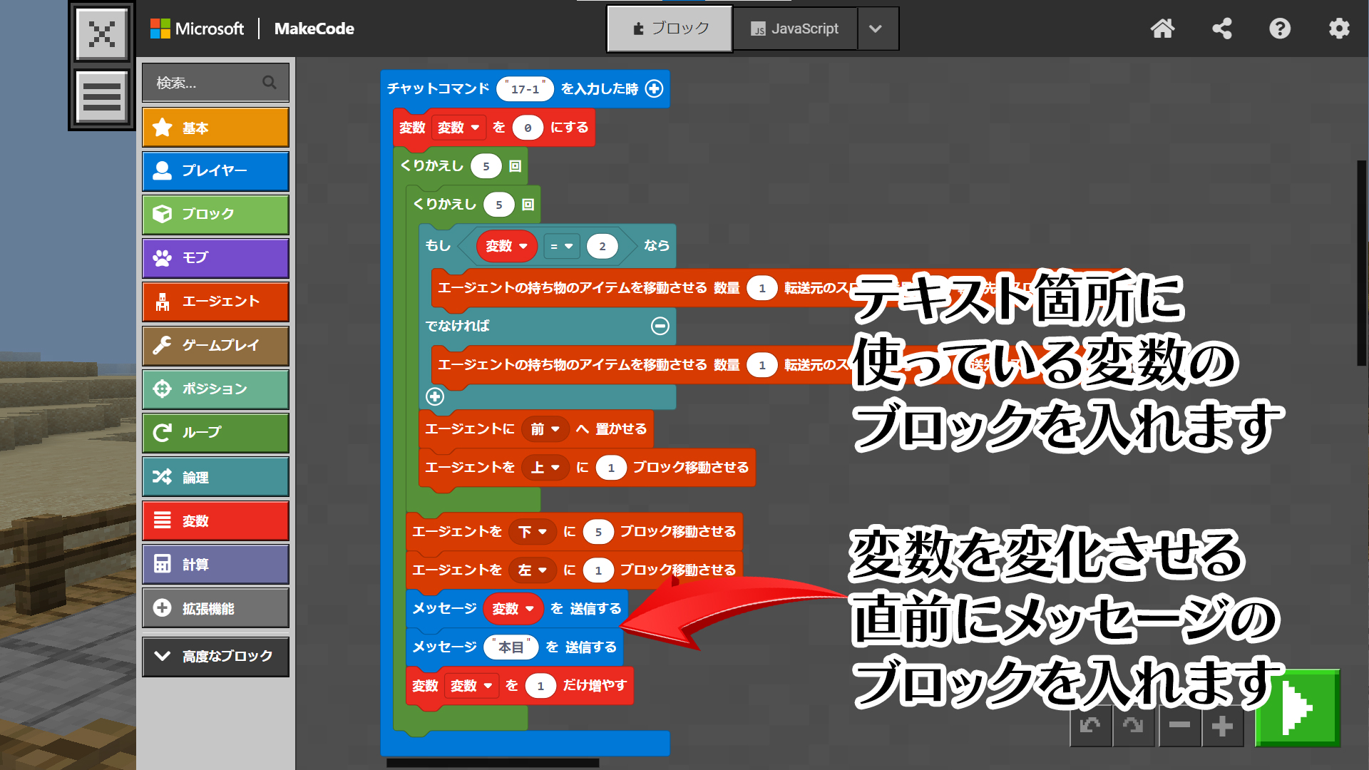 - エージェントのアイテム欄に注意! ブロックがなくなっていないか、減っていないかをよく確認する。