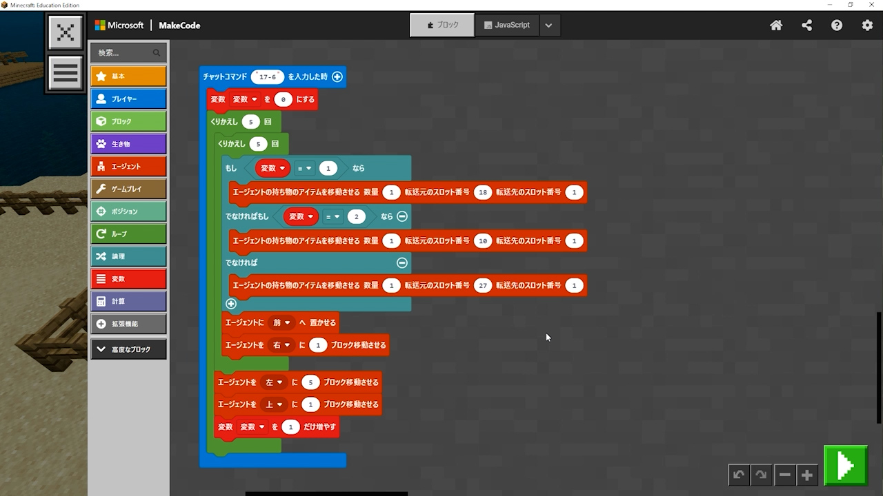 - エージェントのアイテム欄に注意! ブロックがなくなっていないか、減っていないかをよく確認する。
