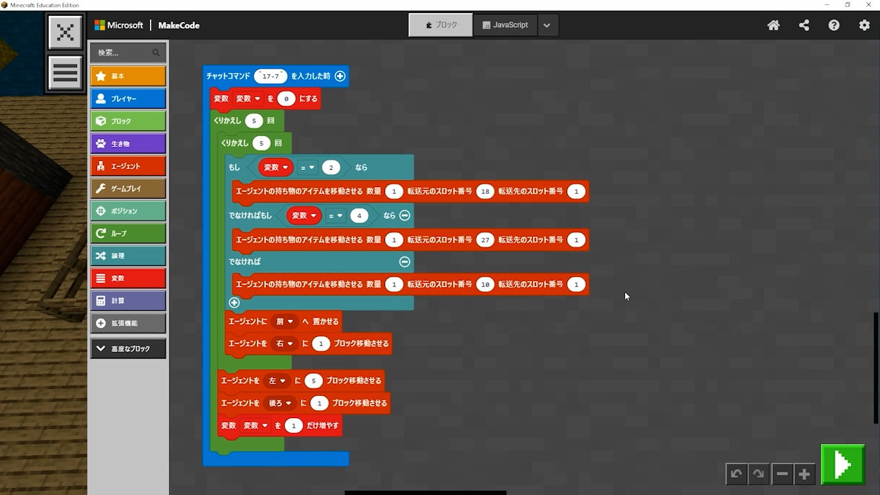 - エージェントのアイテム欄に注意! ブロックがなくなっていないか、減っていないかをよく確認する。
