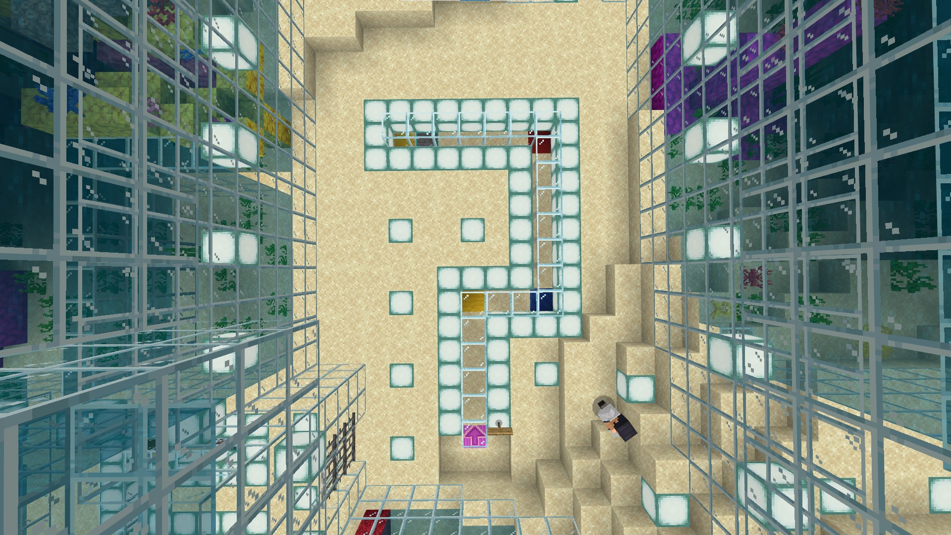 • 一番外側の「もし下のブロックがスイッチではないなら繰り返し」の中の一番上に入れないといけない「前に進む」が変な場所にある、もしくは存在しない。