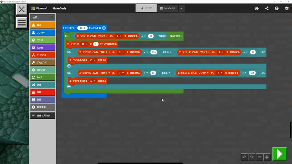 if (agent.inspect(AgentInspection.Block, DOWN) == 22 || agent.inspect(AgentInspection.Block, DOWN) == 133) {