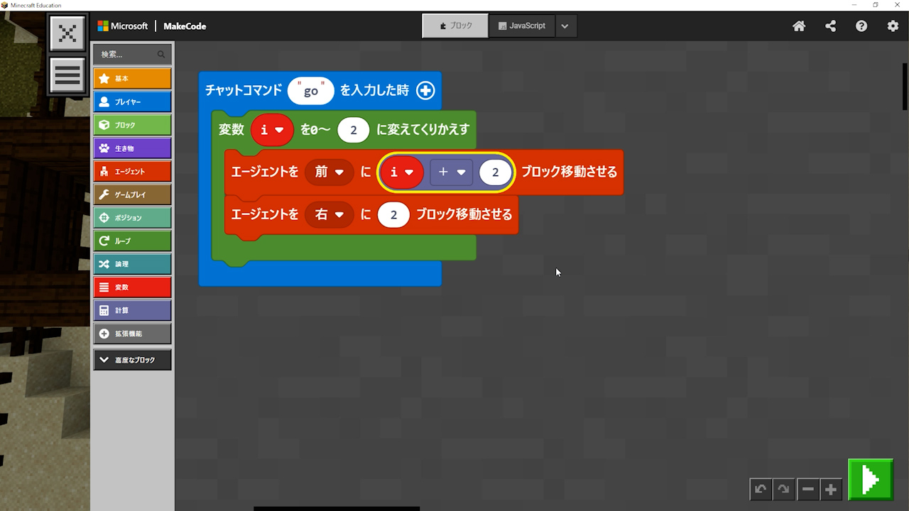 - その後に左に移動するための式を考えてもらう