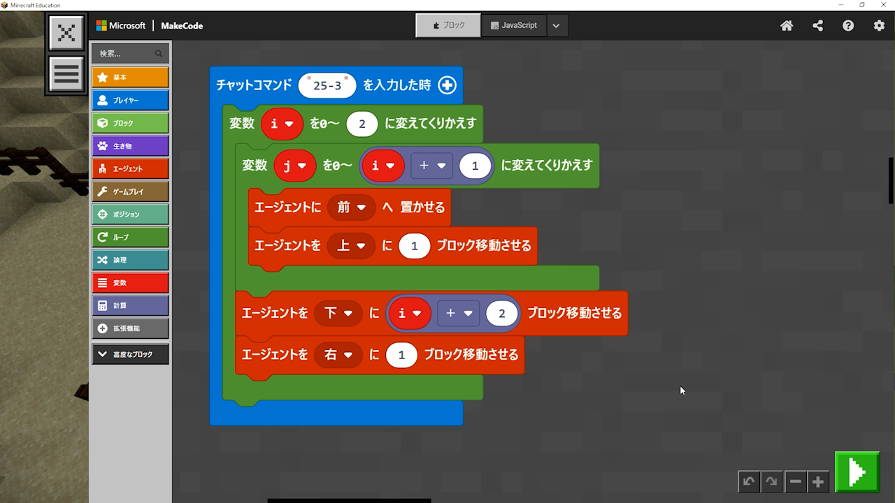 • ステージ10の場合まずは横に移動する数を一定にし、縦の長さのみ変わるプログラムを作ってもらう