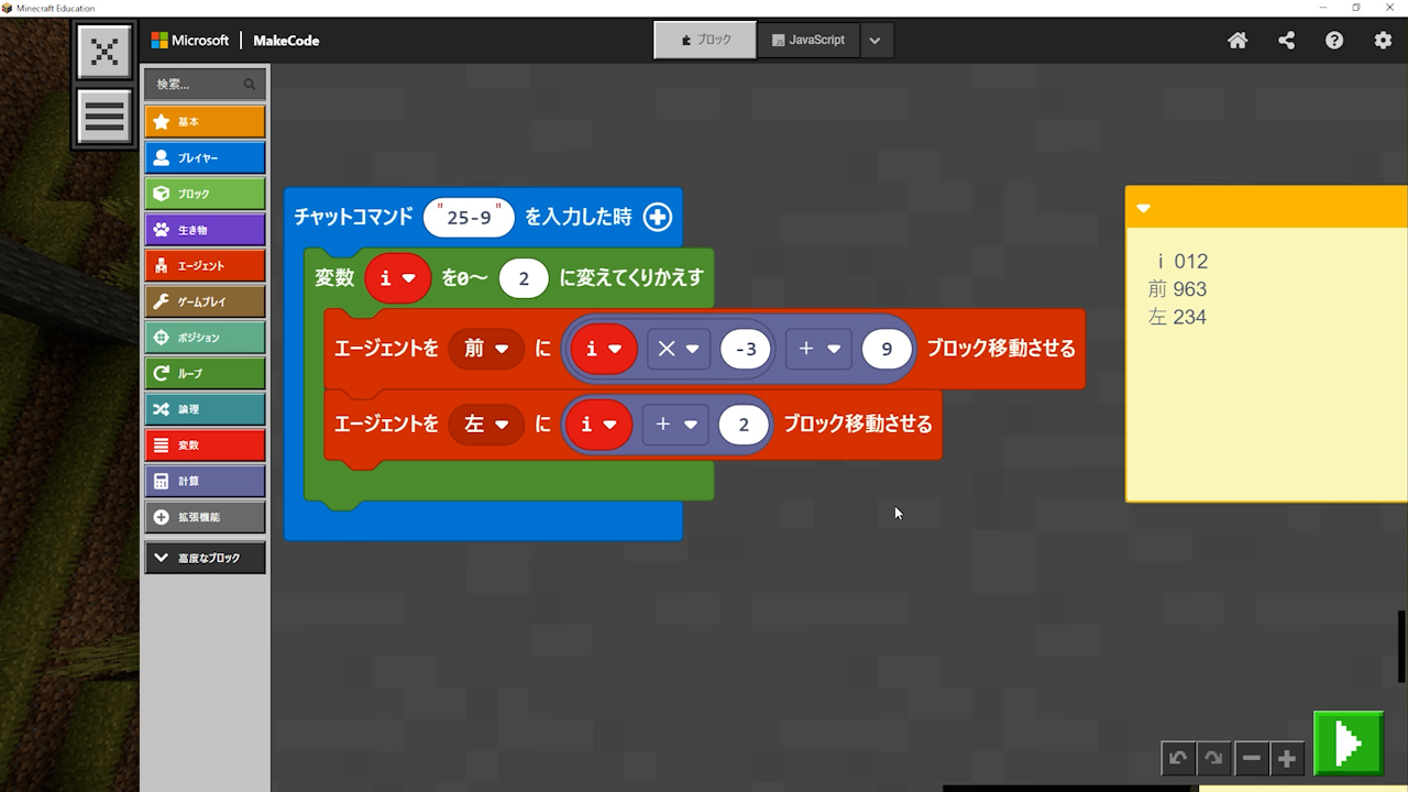 - ステージ10の場合まずは横に移動する数を一定にし、縦の長さのみ変わるプログラムを作ってもらう