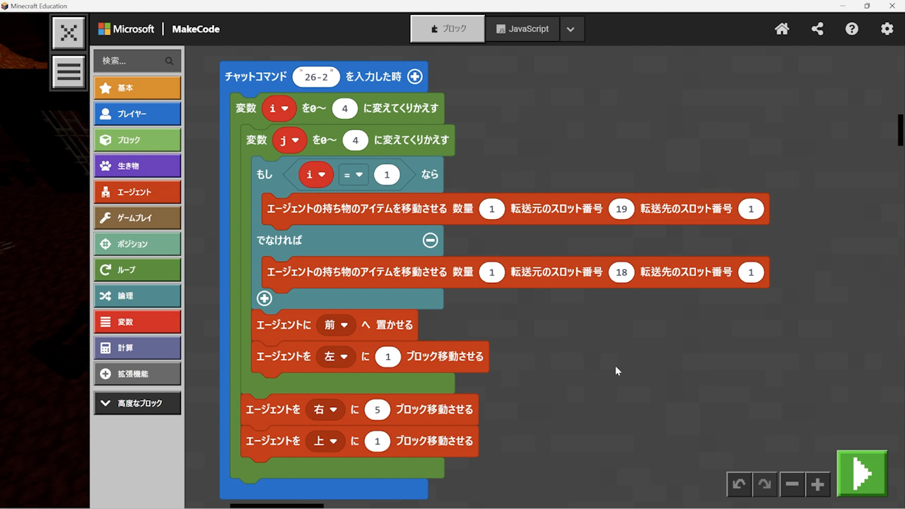 - エージェントのアイテム欄に注意! ブロックがなくなっていないか、減っていないかをよく確認する。