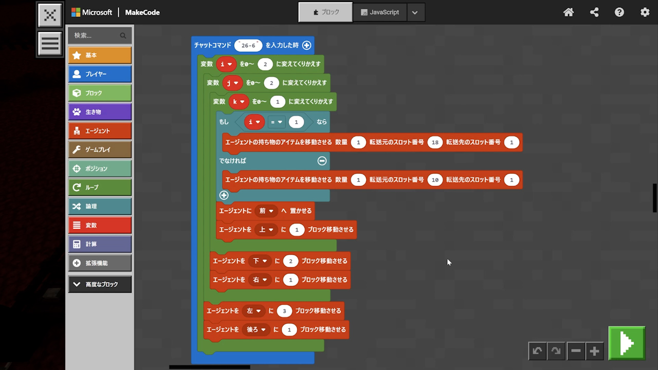 - エージェントのアイテム欄に注意! ブロックがなくなっていないか、減っていないかをよく確認する。
