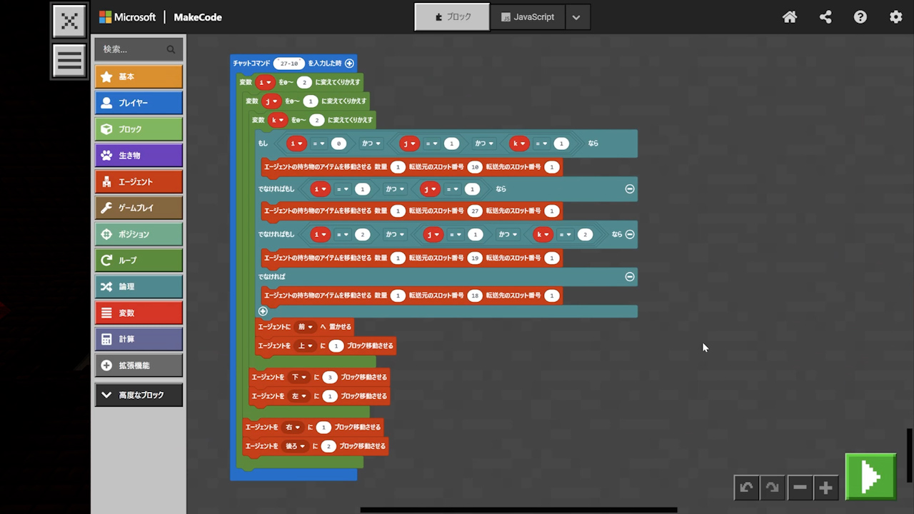 - エージェントのアイテム欄に注意! ブロックがなくなっていないか、減っていないかをよく確認する。