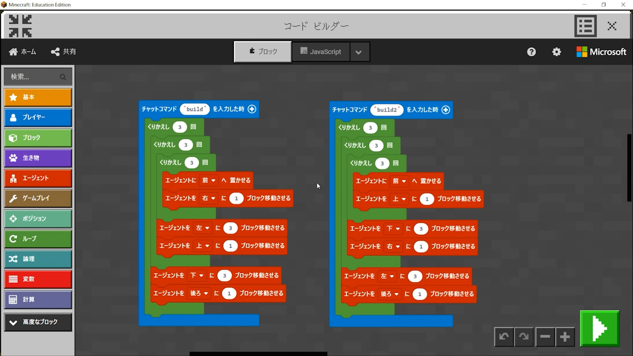 - 同じ形は同じ位置から同じ方向に作れば一緒のプログラムになるように考えさせてみる