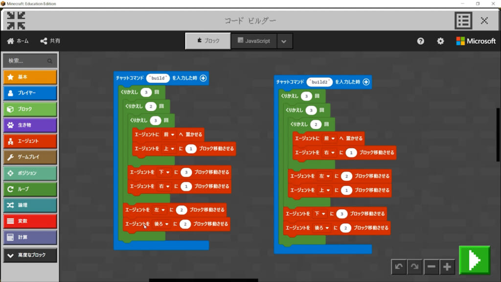 - 同じ形は同じ位置から同じ方向に作れば一緒のプログラムになるように考えさせてみる
