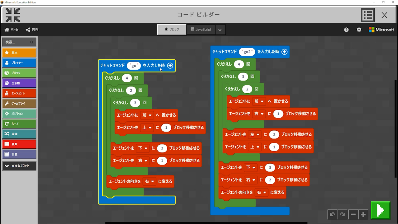 - 同じ形は同じ位置から同じ方向に作れば一緒のプログラムになるように考えさせてみる
