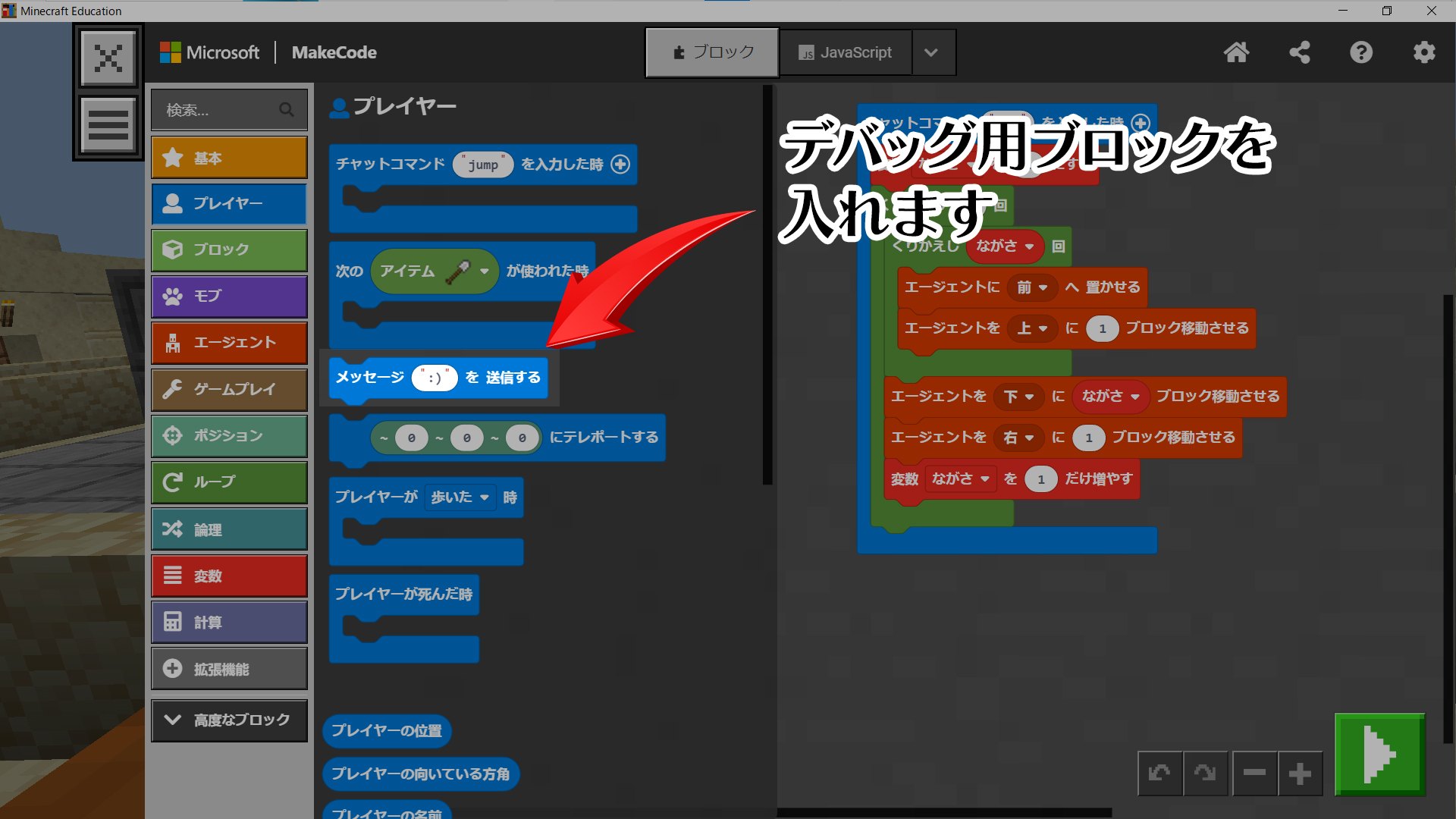 ・エージェントのアイテム欄に注意! ブロックがなくなっていないか、減っていないかをよく確認する。
