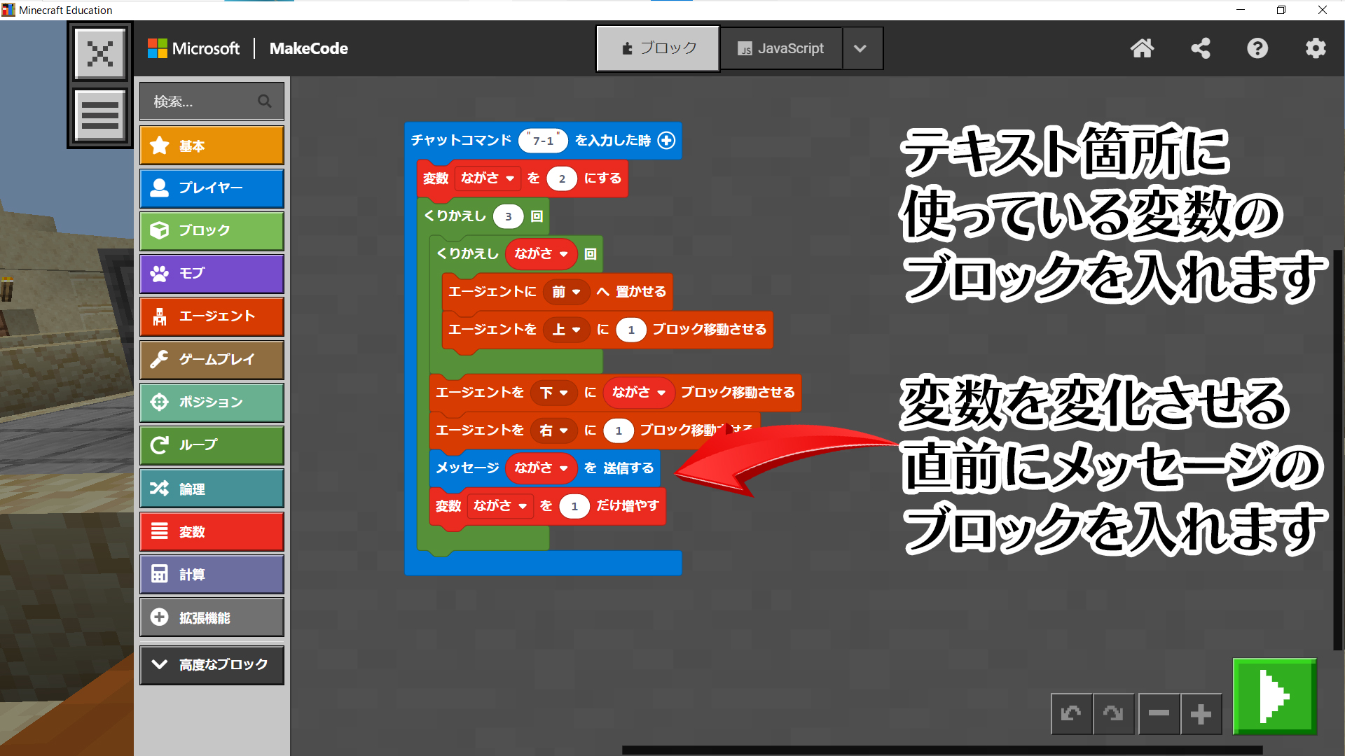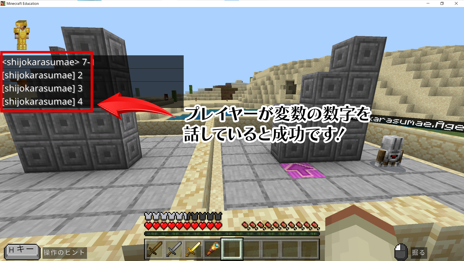というステージ1で教えてる変数の使い方を毎回順序だててさせてみる