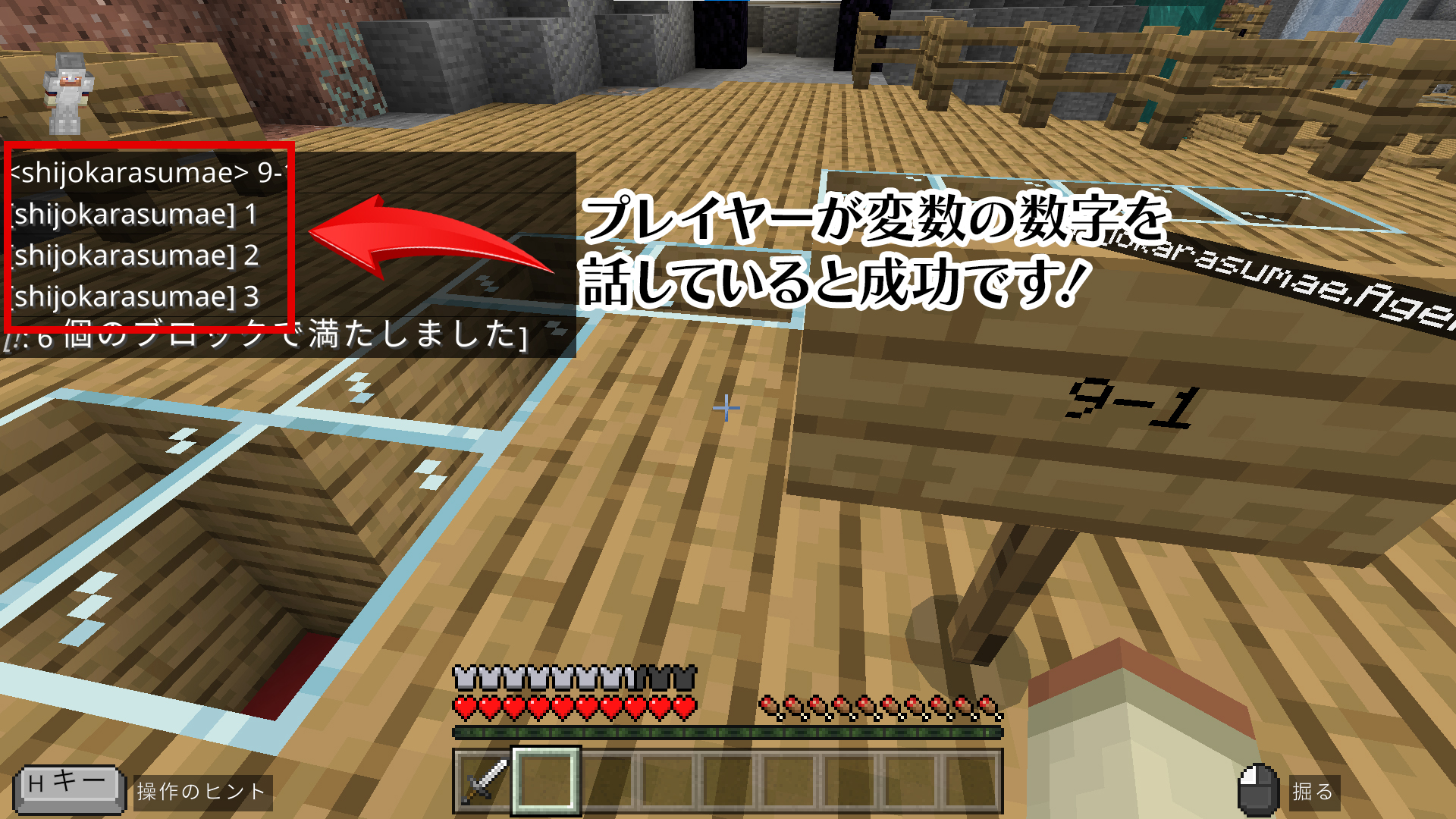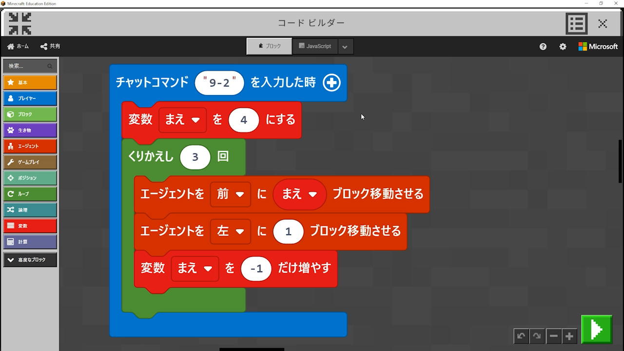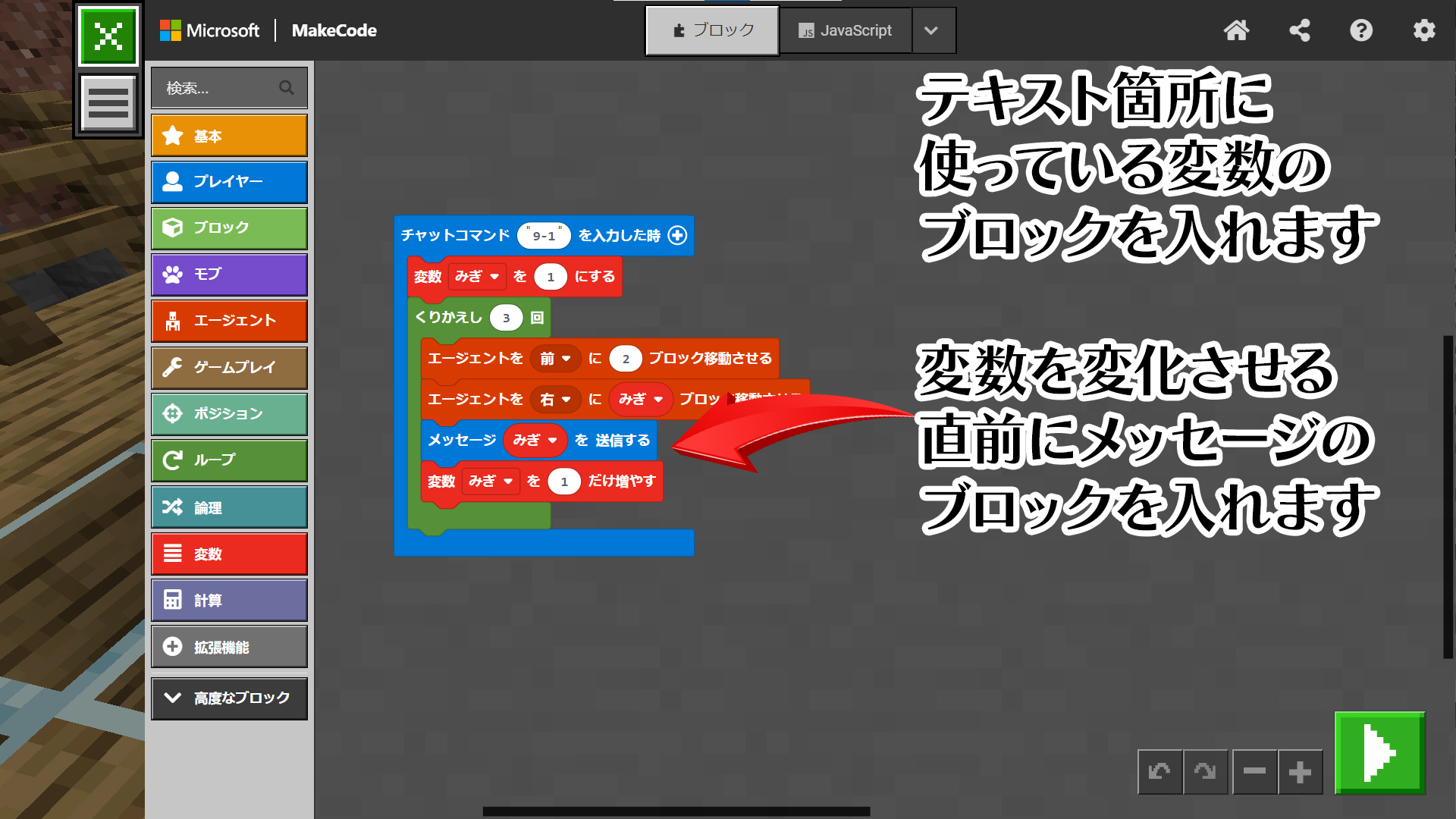 というステージ1で教えてる変数の使い方を毎回順序だててさせてみる
