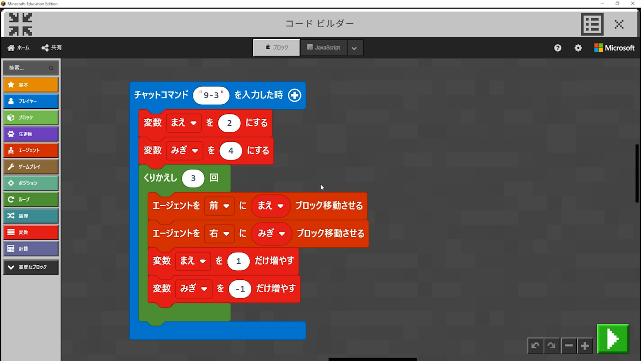 というステージ1で教えてる変数の使い方を毎回順序だててさせてみる
