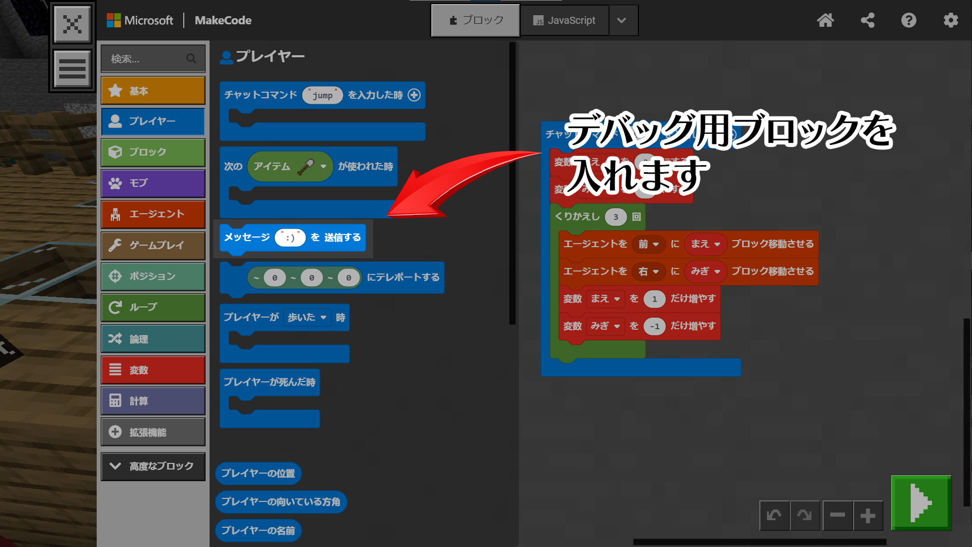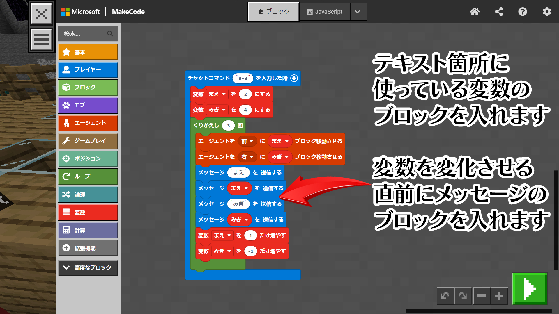 というステージ1で教えてる変数の使い方を毎回順序だててさせてみる